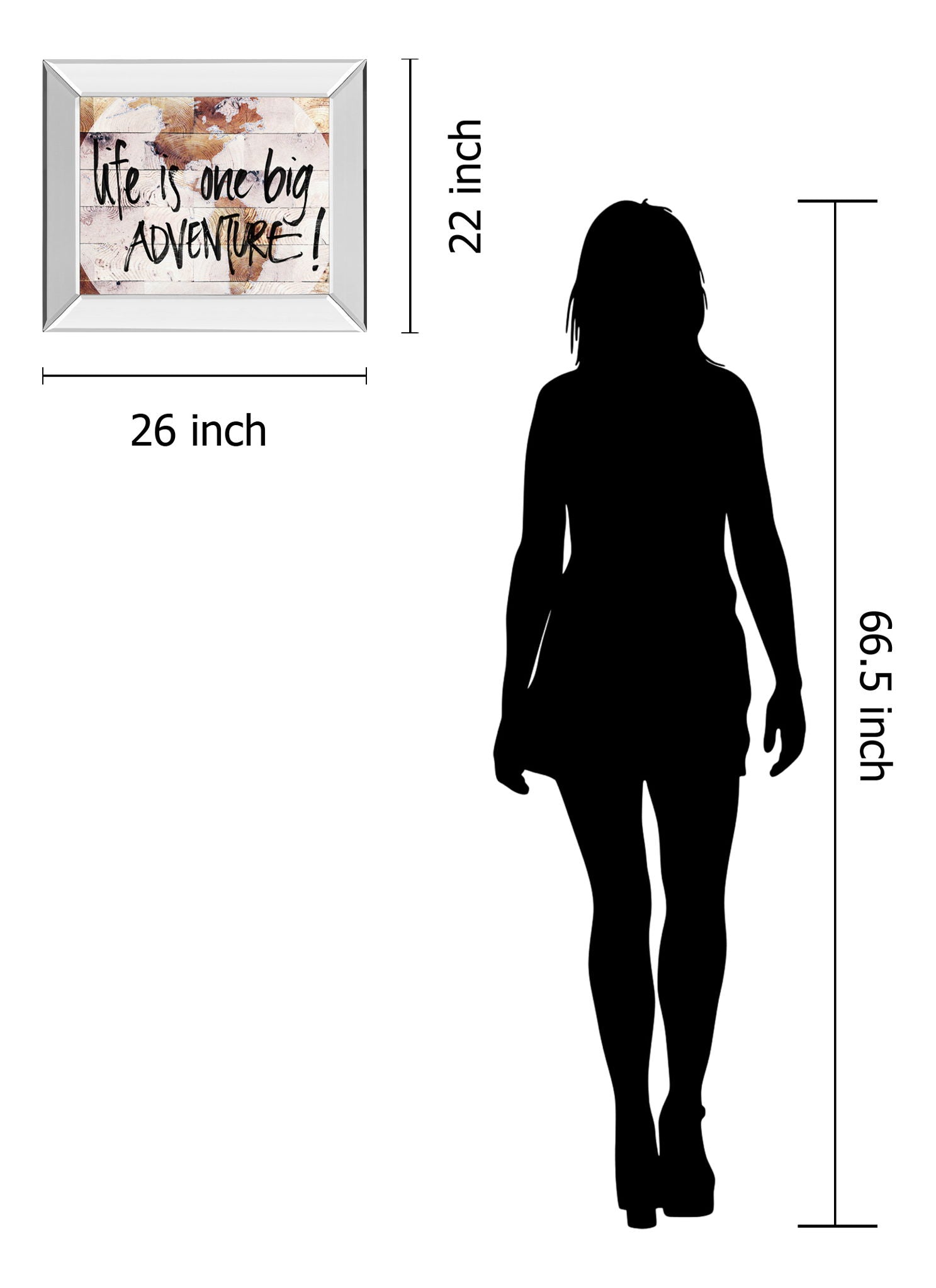 Discover the spirit of exploration with this captivating framed wall art that blends rustic wood textures with a modern mirrored frame. The design features a world map subtly printed on a wood-grain background, overlaid with the inspiring phrase "life is one big adventure!" This piece invites you to embrace every journey and moment as part of a grand adventure. The sleek 2.5-inch mirrored frame adds a touch of sophistication and depth, while the real glass protects the vibrant graphic beneath. Perfectly sized for living rooms, offices, or hallways, it complements transitional decor styles and arrives ready to hang, making it a meaningful and stylish addition to any space.