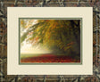 Step into a quiet forest scene where the gentle embrace of autumn leaves meets the soft morning mist. This photographic wall art, titled "Your Beauty Silences Me," captures a serene moment of nature's transition, with vibrant greens blending into warm reds and oranges. Framed in a distinctive camouflage-patterned frame with double matting in cream and green, it offers a refined, gallery-quality presentation. Perfect for living rooms or offices, this piece invites a sense of calm and reflection, bringing the peaceful beauty of the outdoors inside your space.
