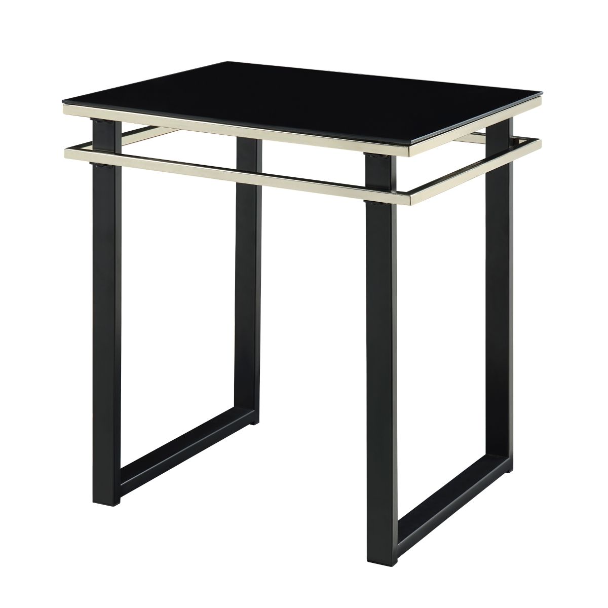 - Black tempered glass top with gold tipping