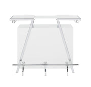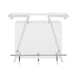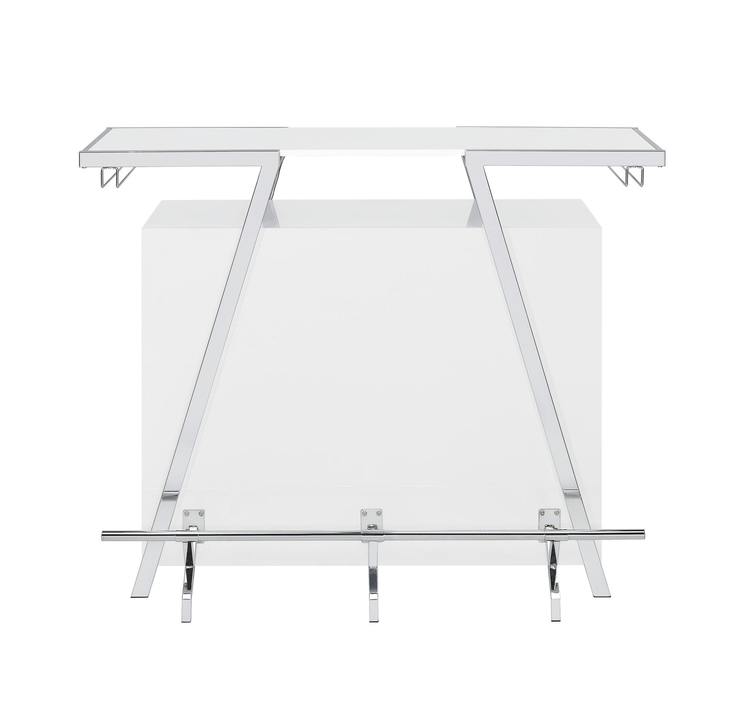 The Zena Bar with LED Lights is perfect for starting your party with style. Featuring a white and chrome design, it boasts a modern geometric shape. It efficiently holds all your bar necessities, including adjustable shelves, a bottle rack, and hanging stemware holders. The highlight of the Zena Bar is its touch-activated LED lights underneath the top, offering nine color options and various lighting speeds. This feature allows you to either set a relaxing ambiance or liven up the atmosphere, making the Zena Bar a central piece in any celebration.