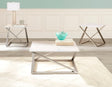 Mixed media with a clean contemporary style, the Zurich 3 pc Occasional Table Set features knife-edge faux marble tops with an asymmetrical metal base that is as interesting as it is functional. The eye-catching design is sure to bring a fresh, updated look to your space. Your purchase includes one cocktail table and two end tables.